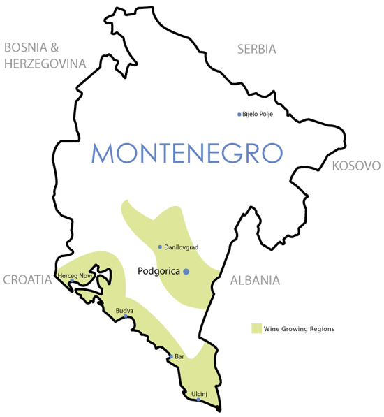 Чорногорія – це країна Балканського півостову, її сусідами являються такі країни як Сербія, Хорватія, Македонія, Албанія та Боснія і Герцоговина, вина яких ви, до речі, можете знайти у супермаркетах країни, так як в Україні їх не зустрінеш. Клімат країни середземноморський, з відчутним впливом Адріатики, до речі, її сусідом через море є італійська Пулія, вина якої по смаку нагадують Чорногорські.